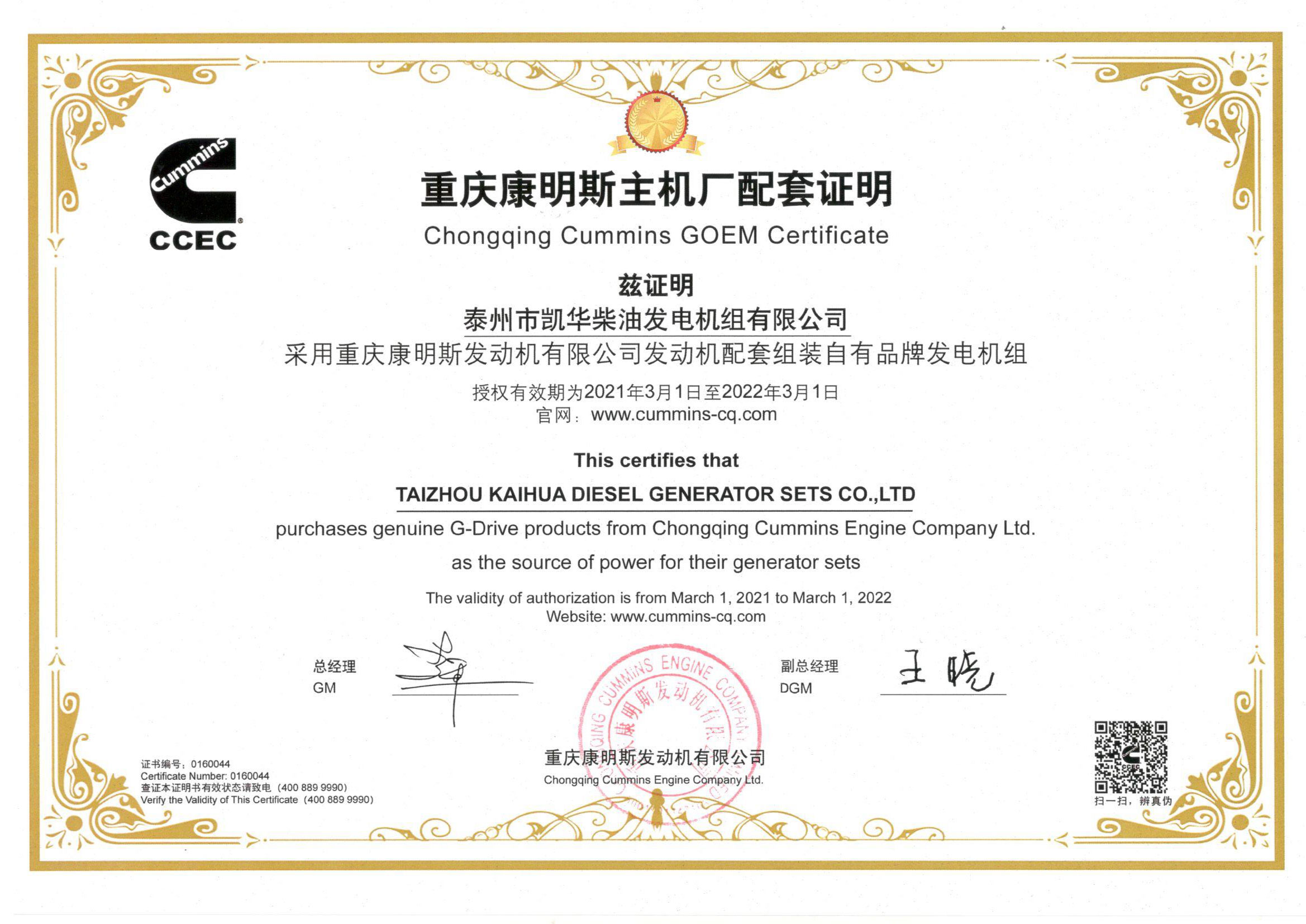 公司主營(yíng)產(chǎn)品:3~3000KW陸用柴油發(fā)電機(jī)組,15~600KW移動(dòng)拖車電站,12~1000KW船用應(yīng)急柴油發(fā)電機(jī)組,各種靜音型、中高壓、多機(jī)并聯(lián)、燃?xì)獾忍胤N機(jī)組以及進(jìn)口系列柴油發(fā)電機(jī)組,可滿足不同客戶的一切電力需求,還可滿足用戶不同電壓、不同頻率的要求。凱華公司是康明斯品牌的授權(quán)代理商,專業(yè)生產(chǎn)供應(yīng)康明斯柴油發(fā)電機(jī)組。